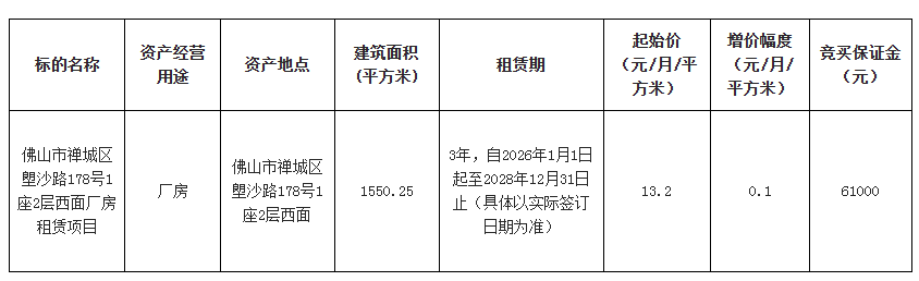 2.交易保证金到账截止时间为2025年12月25日下午5:30,超过截止时间达账则不能参加竞租;