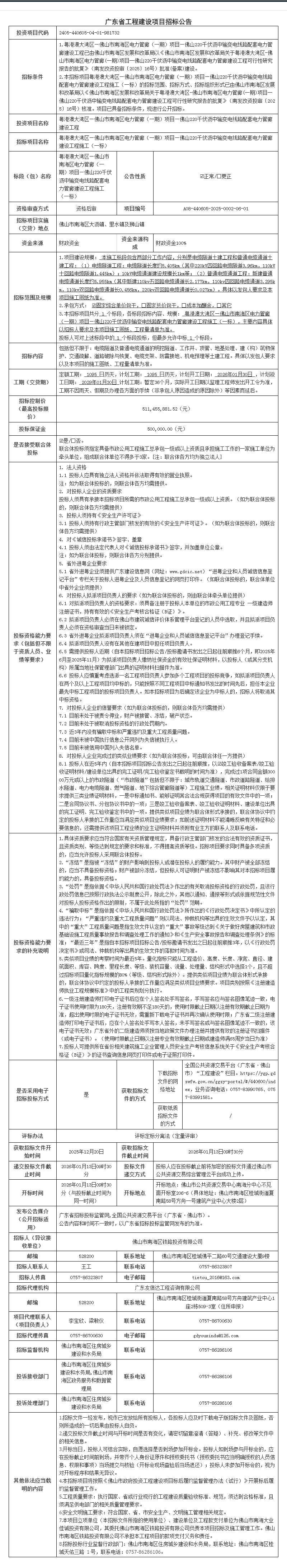 粤港澳大湾区—佛山市南海区电力管廊(一期)项目—佛山220千伏沥中输变电线路配套电力管廊建设工程施工(一标)招标公告