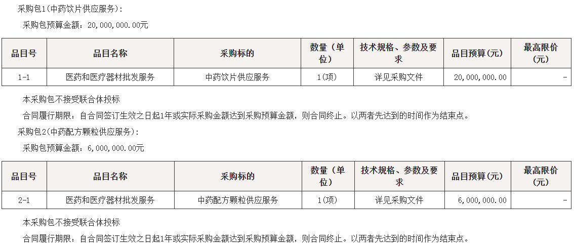中药饮片和中药配方颗粒供应服务项目招标公告