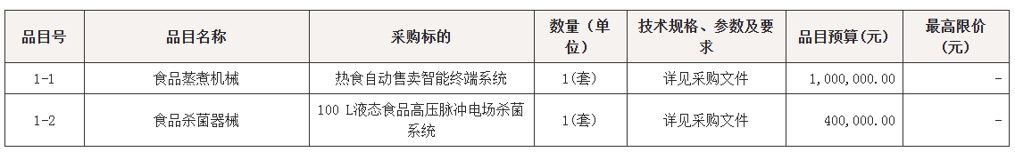 热食智能自动售卖终端与食品冷杀菌实验室建设项目招标公告