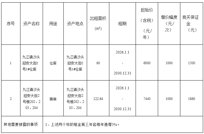 1.招/出租人:佛山市南海区九江镇镇有资产管理有限公司