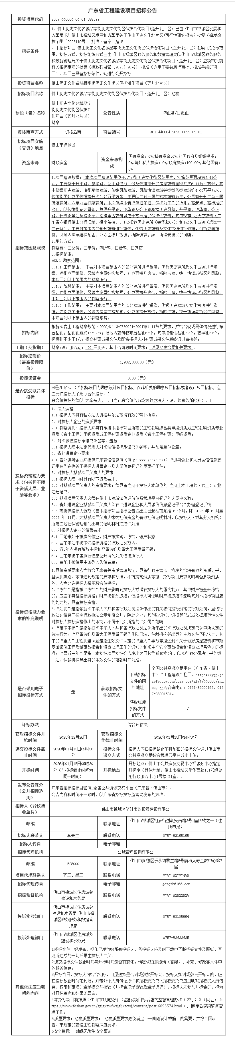 佛山历史文化名城品字街历史文化街区保护活化项目(莲升北片区)勘察招标公告