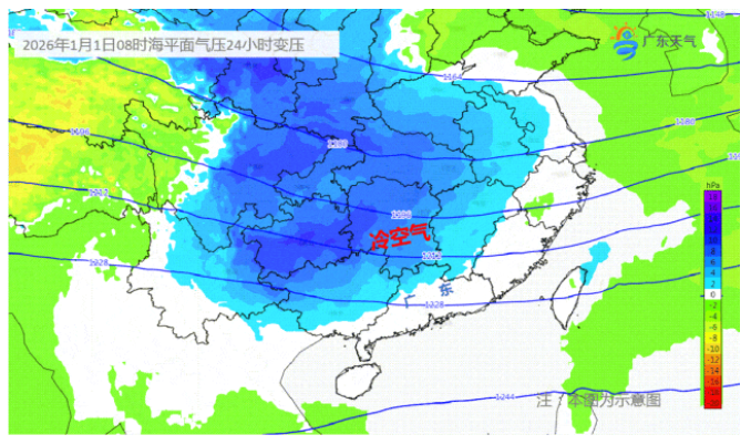 2026年1月1日,受冷空气前锋影响,粤北、珠三角北部市县阴天,有小雨,其余市县阴天,有分散小雨。