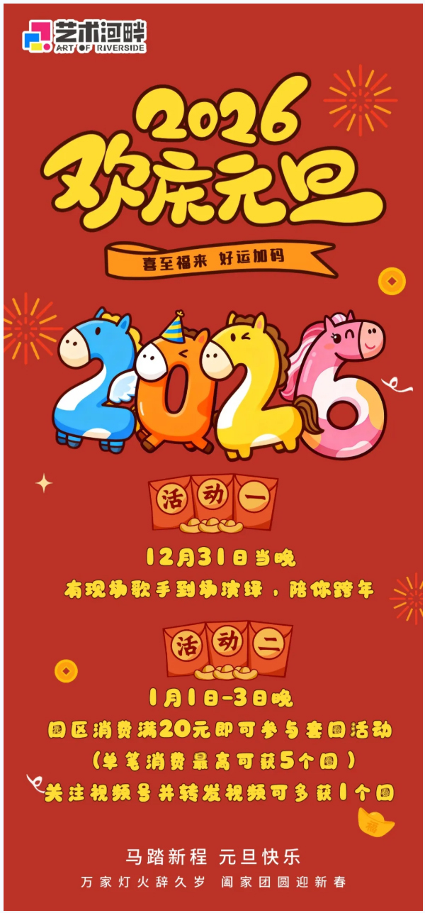 里水艺术河畔邀你赴一场充满活力的元旦欢唱之约!这个元旦,面向全城召集爱唱歌的你,站上河畔的舞台,用歌声点亮新年,用旋律传递喜悦!