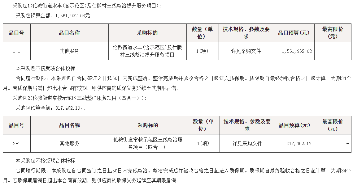 项目名称:伦教街道常教示范区、永丰及仕版三线整治提升服务项目