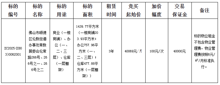 1.项目名称:佛山市顺德区伦教街道办事处常教居委会伦常路266号、266号之一、266号之二公有物业公开招租项目