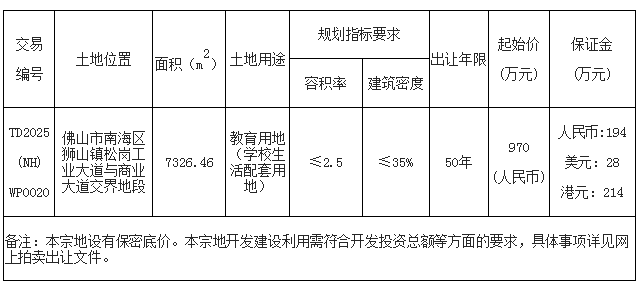佛山市南海区国有建设用地使用权网上拍卖出让公告