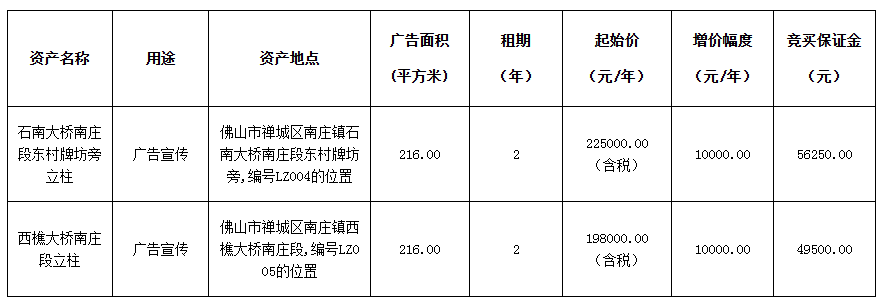 禅城石南大桥南庄段东村牌坊旁立柱;西樵大桥南庄段立柱租赁公告