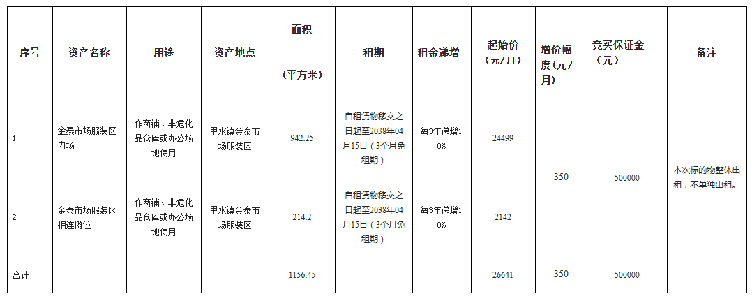 南海里水镇金泰市场服装区内场及相连服装摊位整体出租项目