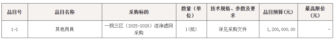 一院三区(2025-2026)洁净滤网采购招标公告