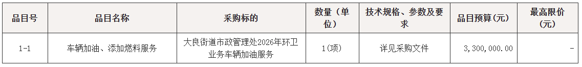 大良街道市政管理处2026年环卫业务车辆加油服务采购项目的潜在供应商应在广东省政府采购网https://gdgpo.czt.gd.gov.cn/获取采购文件,并于 2026年01月13日 09时30分 (北京时间)前提交响应文件。