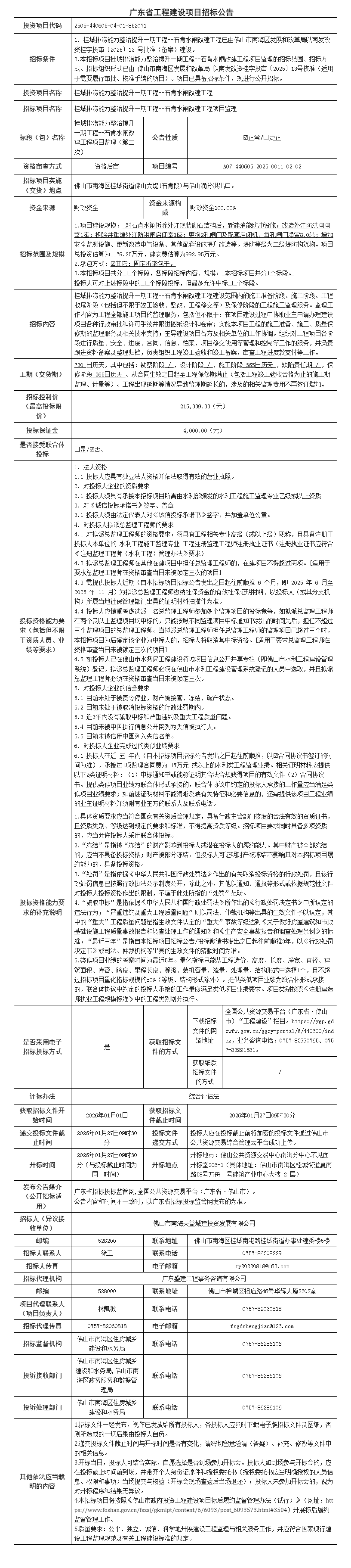 概述:桂城排涝能力整治提升一期工程--石肯水闸改建工程已由佛山市南海区发展和改革局以南发改资桂字投审〔2025〕13 号批准(备案)建设。......