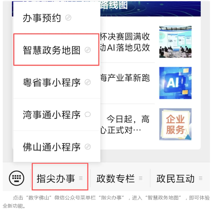 您还可根据自身使用习惯,通过“数字佛山”“佛山政务服务”“禅城一门式”“南海政务通”“顺德政务百事通”“高明通”“三水政务服务”微信公众号,以及佛山通小程序等多个渠道,直进“智慧政务地图”,畅享高效便捷的服务体验。