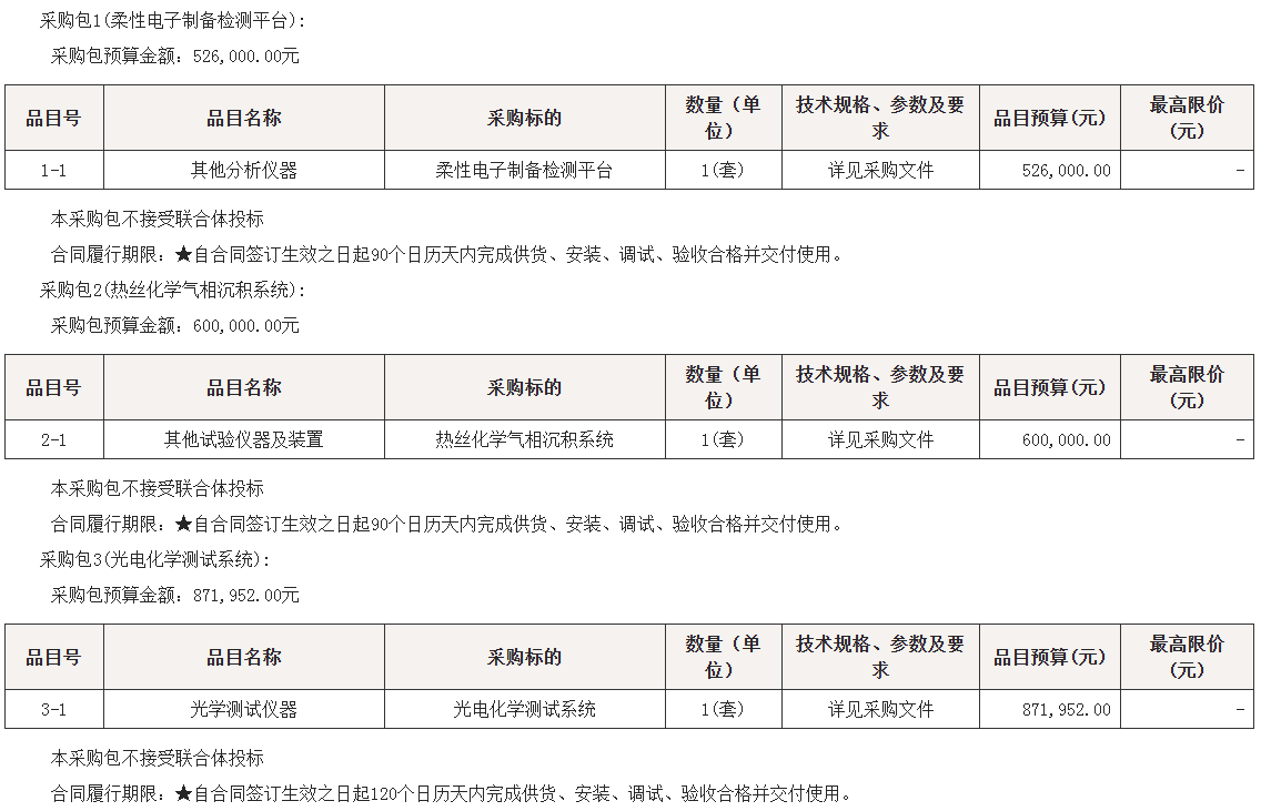 > 柔性能源材料制备及光电性能测试平台招标公告