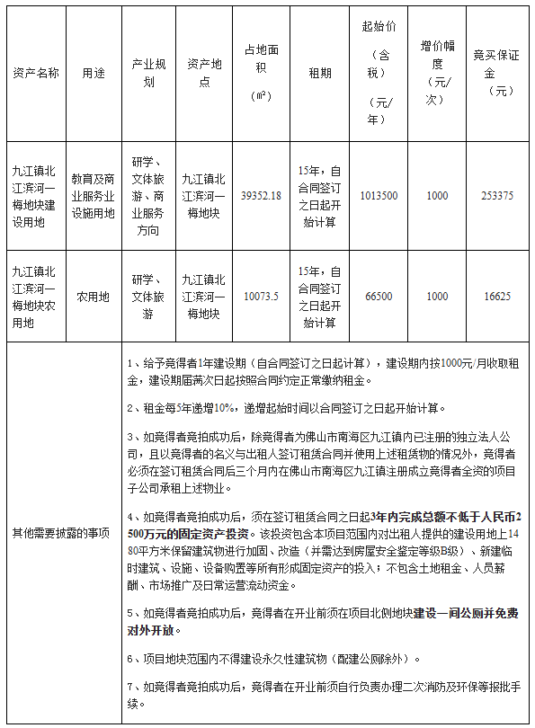 2.佛山市公共资源交易中心南海分中心通过佛山市资产交易网上交易系统及粤公平网站发布的项目信息(包括但不限于公告信息、交易文件、合同条款等)并不构成佛山市公共资源交易中心南海分中心对项目的任何交易建议。意向竞买人应不依赖于已披露的项目信息并自行对项目的相关情况进行必要的尽职调查和充分了解,对是否竞买该项目及项目成交后可能发生的费用和存在的风险自行作出充分评估,并独立承担所有风险。意向竞买人一经申请参加竞买,即视为知晓、认可项目现状,佛山市公共资源交易中心南海分中心对此不承担任何法律责任。