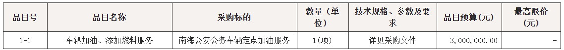 南海公安公务车辆定点加油服务采购项目的潜在供应商应在广东省政府采购网https://gdgpo.czt.gd.gov.cn/获取采购文件,并于 2026年01月19日 09时00分 (北京时间)前提交响应文件。