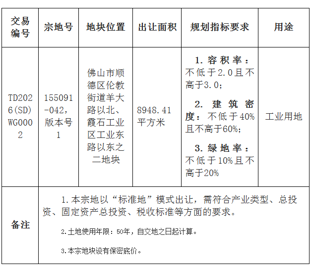 五、有意参与竞买者可于2026年1月6日后登录网上交易系统下载TD2026(SD)WG0002地块的《佛山市顺德区国有建设用地使用权网上挂牌出让文件》。