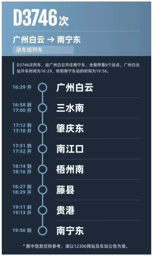 本次调整后,三水市民可从三水南站直达广州白云站和广州站等广州枢纽站,不需要从佛山西站或广州南站进行中转,为春运期间市民出行提供更多便利性和选择性。