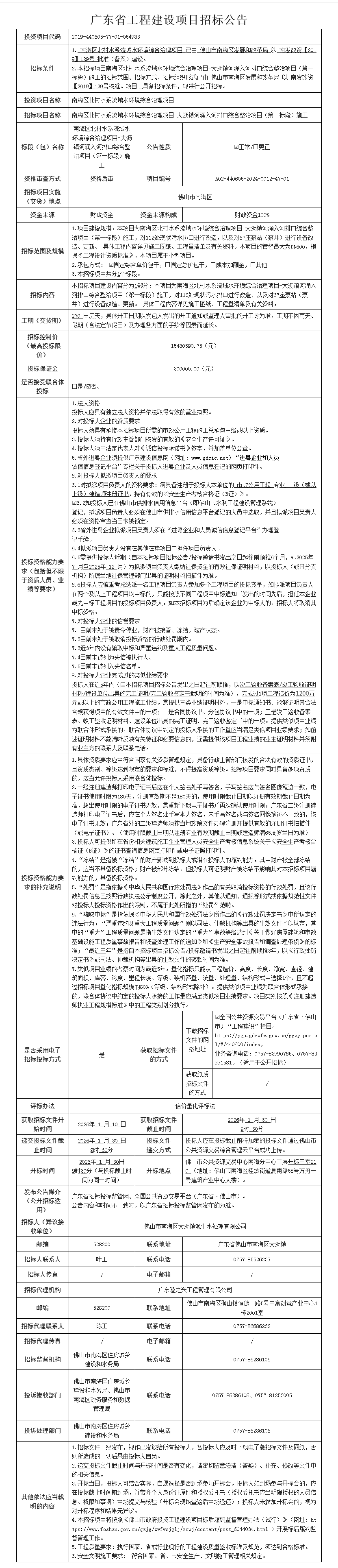 南海区北村水系流域水环境综合治理项目-大沥镇河涌入河排口综合整治项目(第一标段)施工招标公告