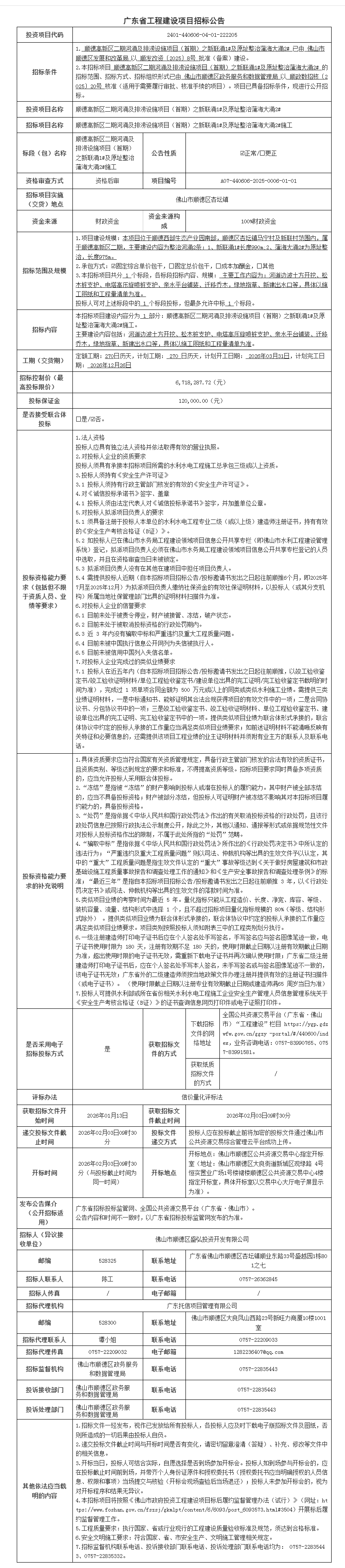 佛山市南海区红星运河水系水环境综合治理项目-红星运河和旧花岗站涌清淤工程监理招标公告