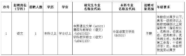 初中语文学科:1名