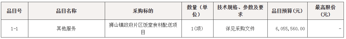 项目名称:狮山镇政府片区饭堂食材配送项目