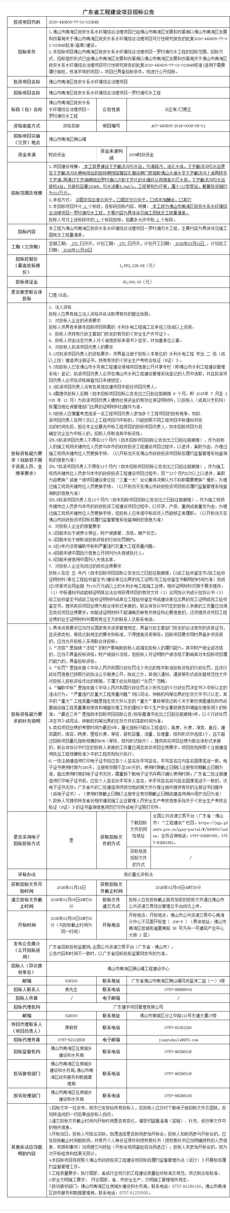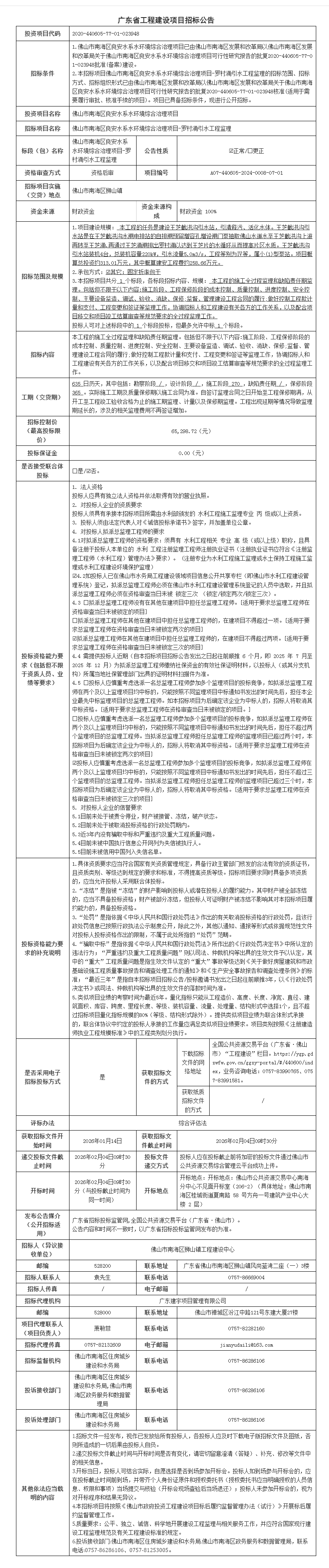 佛山市南海区良安水系水环境综合治理项目—罗村涌引水工程招标公告