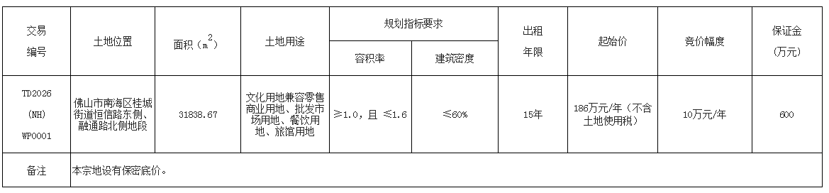 经佛山市人民政府批准,佛山市自然资源局决定委托佛山市公共资源交易中心南海分中心采用网上拍卖方式出租下列地块的国有建设用地使用权。现将有关事项公告如下: