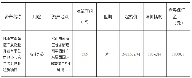 1.招/出租人: 佛山市南海区兴夏物业开发有限公司