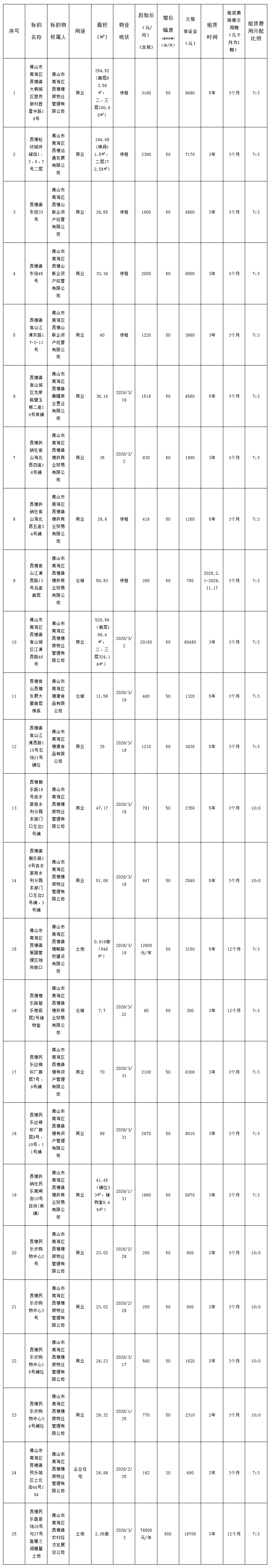 南海西樵镇公有物业招租(2026年第1期)第二批