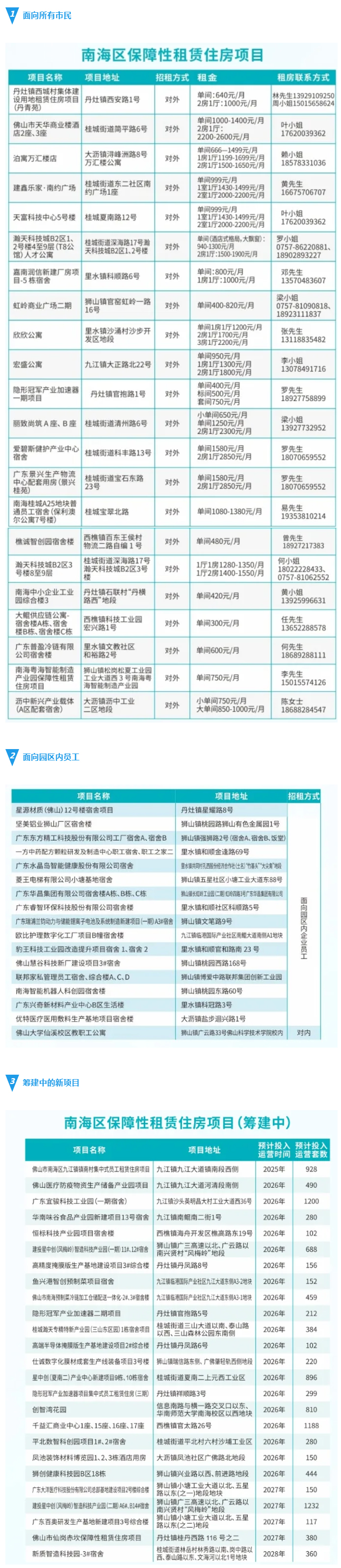 2021年,国务院办公厅印发《关于加快发展保障性租赁住房的意见》,佛山市相继出台工作方案和管理办法,南海区大力推进保障性租赁住房筹集,加快建立多渠道、分层次、广覆盖、可持续的住房保障体系,通过新建、存量纳管等方式多渠道筹集保障性租赁住房。目前南海共筹集建设保障性租赁住房项目66个,房源共计27812套,已竣备投入运营的保障性租赁住房共14451套。