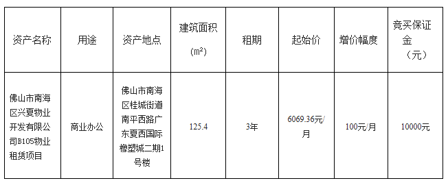 1.招/出租人: 佛山市南海区兴夏物业开发有限公司