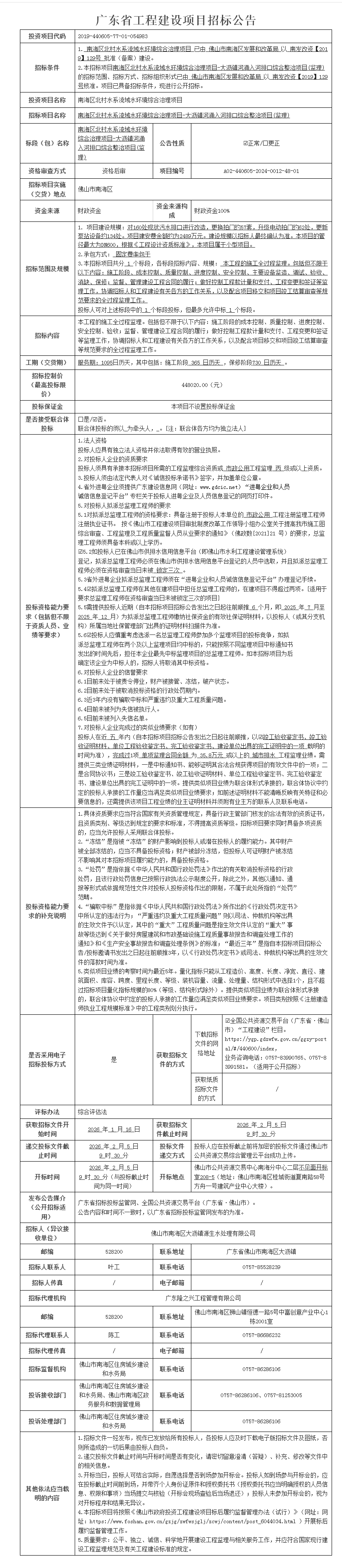 南海区北村水系流域水环境综合治理项目-大沥镇河涌入河排口综合整治项目(监理)招标公告