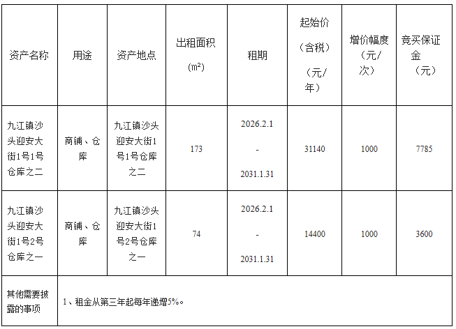 3.招/出租人:佛山市南海区九江镇镇有资产管理有限公司