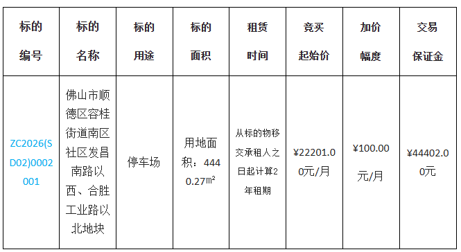 1.项目名称:佛山市顺德区容桂街道南区社区发昌南路以西、合胜工业路以北地块租赁权竞投