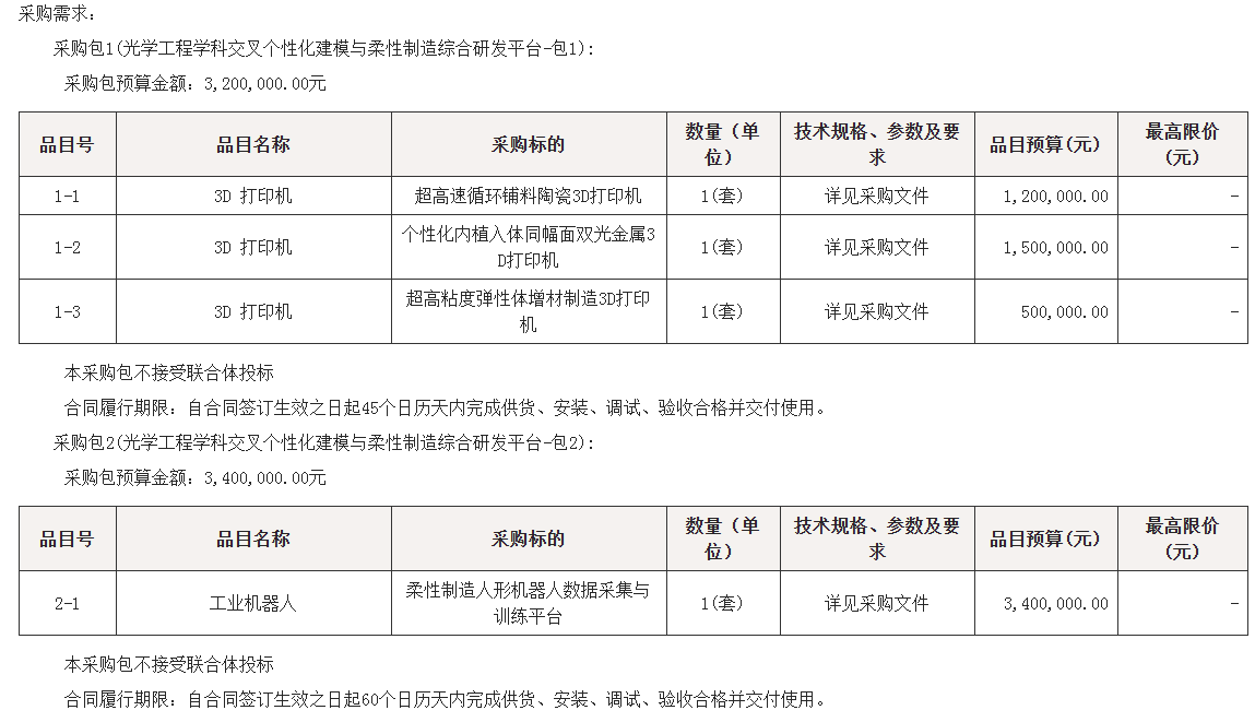 采购包2(光学工程学科交叉个性化建模与柔性制造综合研发平台-包2)特定资格要求如下: