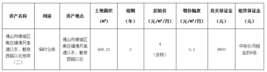 2.佛山市公共资源交易中心南海分中心通过佛山市资产交易网上交易系统及粤公平网站发布的项目信息(包括但不限于公告信息、交易文件、合同条款等)并不构成佛山市公共资源交易中心南海分中心对项目的任何交易建议。意向竞买人应不依赖于已披露的项目信息并自行对项目的相关情况进行必要的尽职调查和充分了解,对是否竞买该项目及项目成交后可能发生的费用和存在的风险自行作出充分评估,并独立承担所有风险。意向竞买人一经申请参加竞买,即视为知晓、认可项目现状,佛山市公共资源交易中心南海分中心对此不承担任何法律责任。