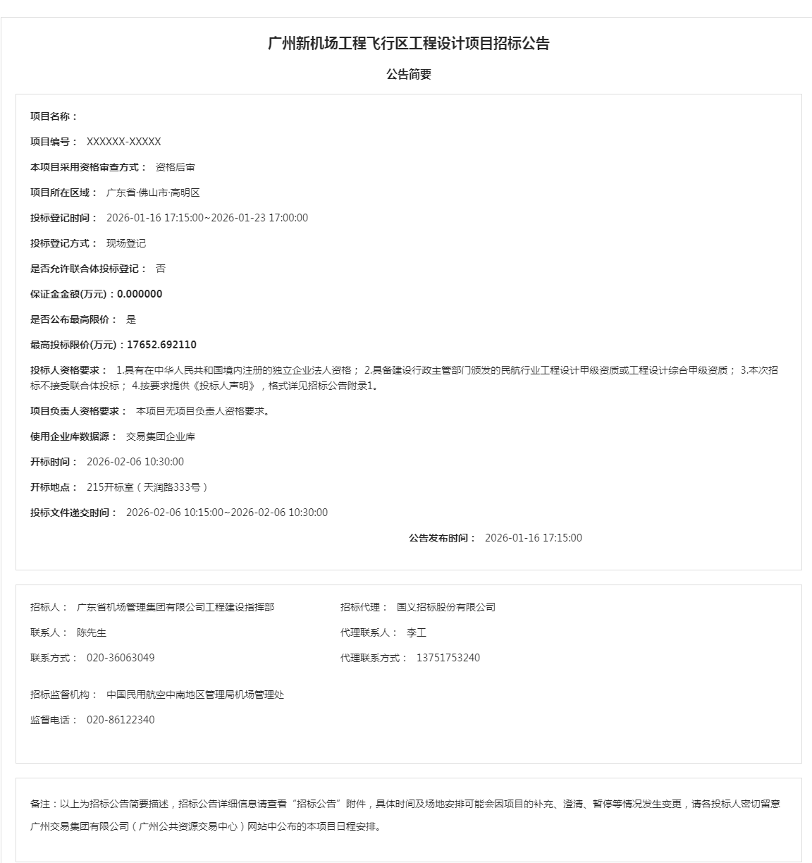 2.佛山市公共资源交易中心南海分中心通过佛山市资产交易网上交易系统及粤公平网站发布的项目信息(包括但不限于公告信息、交易文件、合同条款等)并不构成佛山市公共资源交易中心南海分中心对项目的任何交易建议。意向竞买人应不依赖于已披露的项目信息并自行对项目的相关情况进行必要的尽职调查和充分了解,对是否竞买该项目及项目成交后可能发生的费用和存在的风险自行作出充分评估,并独立承担所有风险。意向竞买人一经申请参加竞买,即视为知晓、认可项目现状,佛山市公共资源交易中心南海分中心对此不承担任何法律责任。