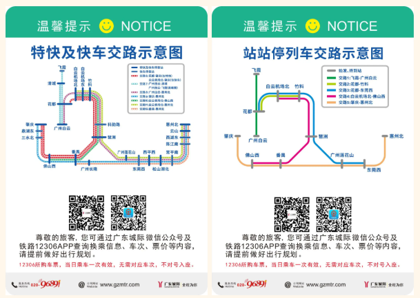 据了解,结合新线开通,广东城际将调整部分线路运行图及始发站点。调整后,广东城际全天开行5条站站停交路, 7条特快列车、大站快车交路。运行图调整后,旅客出行前可通过广州地铁APP“城际出行助手”、广东城际官方微信公众号“城际出行助手”“运营时刻表”子栏目或铁路12306查询列车时刻表,合理规划行程,预留充足的乘车时间。