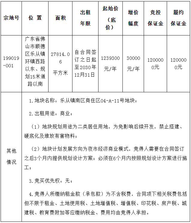 4.佛山市顺德区乐从镇人民政府对本次国有建设用地使用权出租拥有最终解释权。