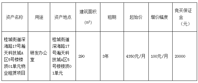 南海桂城街道深海路17号瀚天科技城A区5号楼楼顶01单元物业租赁项目