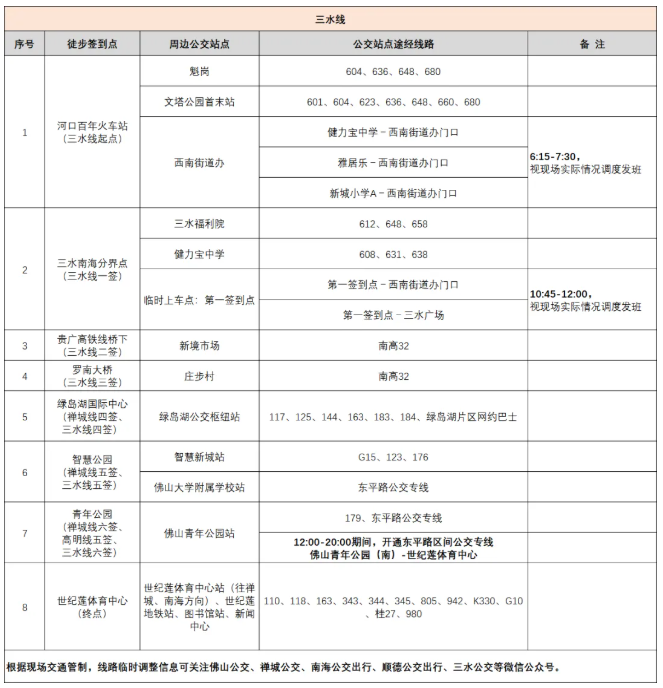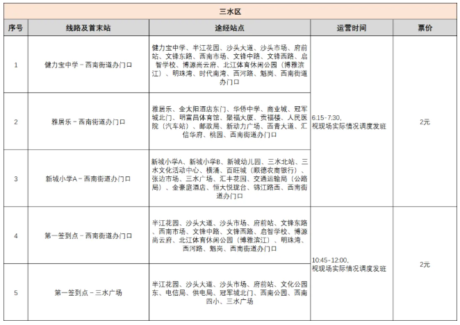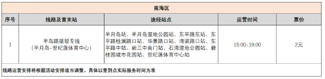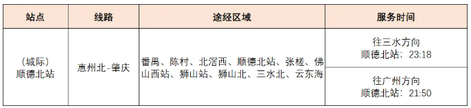 终点开设高明、三水活动专线,专线服务时间为18:00-22:00