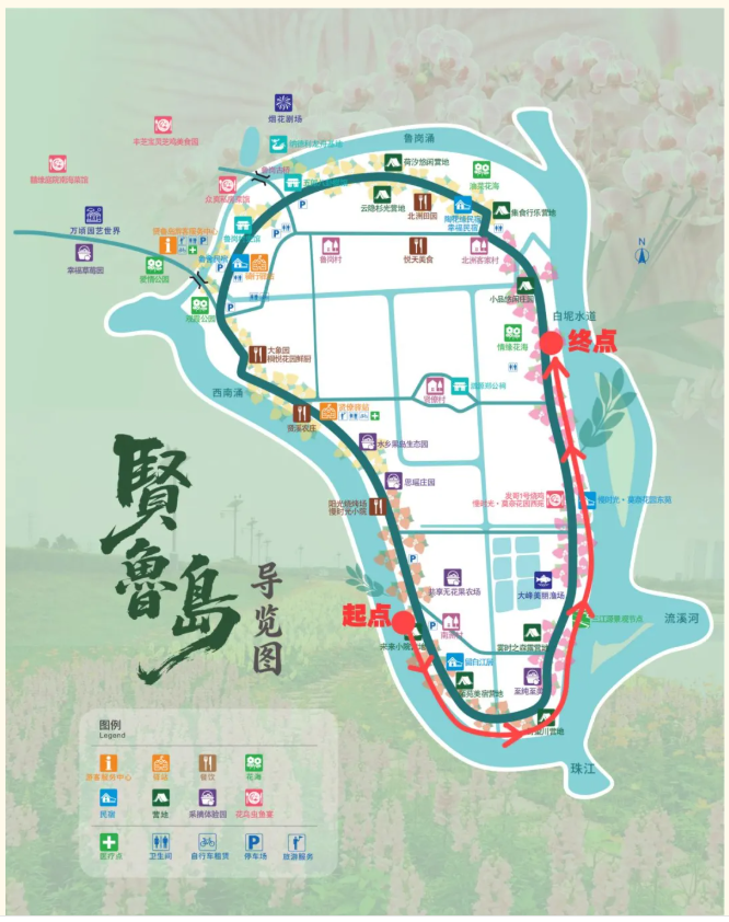 贤鲁岛坐拥“三江汇流、四Y交织”,佛山西南涌、广州花都白坭河、白云流溪河、广佛水系在此交融。“贤鲁跑”是里水镇自主打造的路跑品牌,依托贤鲁岛13.14公里环岛花道,融合运动、生态与心灵体验,打造广佛都市圈首个以“一生一世”为精神内核的常态化主题跑步活动,月月有主题、季季有爆点,期待与你跑遍贤鲁岛的四季美好。跑完“贤鲁跑”顺路打卡贤鲁岛沿途餐厅,品尝里水特色“花鸟虫鱼宴”。