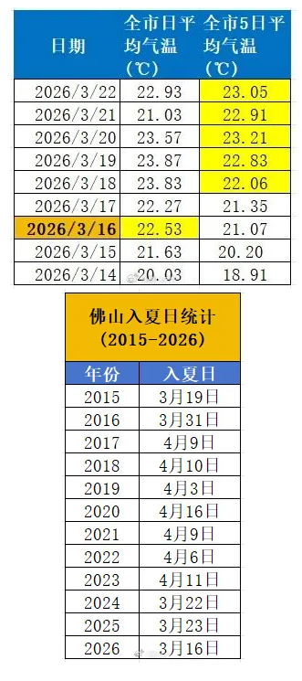 3月16日佛山已达到入夏标准