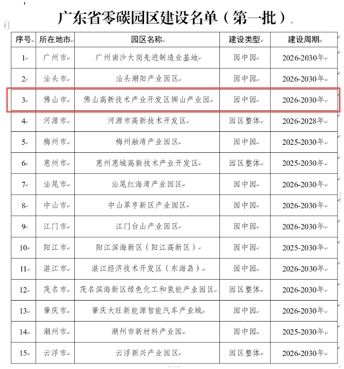 广东省零碳园区建设名单
