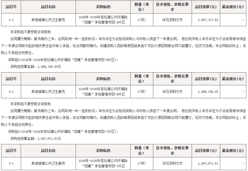 采购包1(2026年-2029年杏坛镇公共环境除“四害”承包管理项目-A片区):