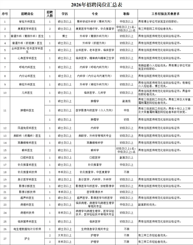 概述:本次招聘岗位共27个,共招聘34人。自公告发布之日起接受报名,至岗位招满为止;每位应聘者限报一个岗位。......
