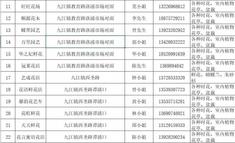 九江镇年花年桔销售点信息表↓↓
