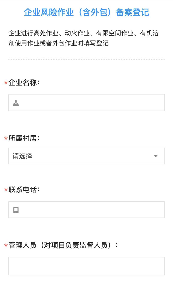 企业在进行高风险作业(顶棚修缮、装修工程、设备检修、空调安装、人字梯作业、装卸、搬运、动火作业、有限空间作业、涉有机溶剂作业)请提前报备。