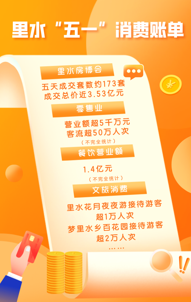 此外,里水多个商圈、食肆纷纷推出促消费活动,形式包括打造车尾箱市集,集印花抽奖,派发免费菜品、餐饮券,场内消费联动等,旺足人气。据不完全统计,“五一”期间,里水零售业营业额超5千万元,客流为50万人次;餐饮营业额为1.4亿元。